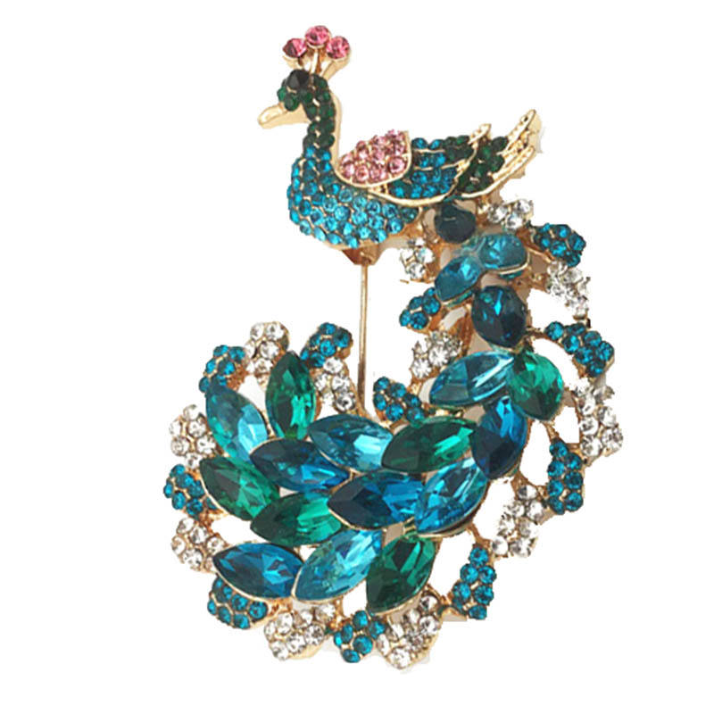 Nombre del producto:Delicado encanto Crystal Rhinestone Pins Broche de pavo real de lujo Pin de solapa