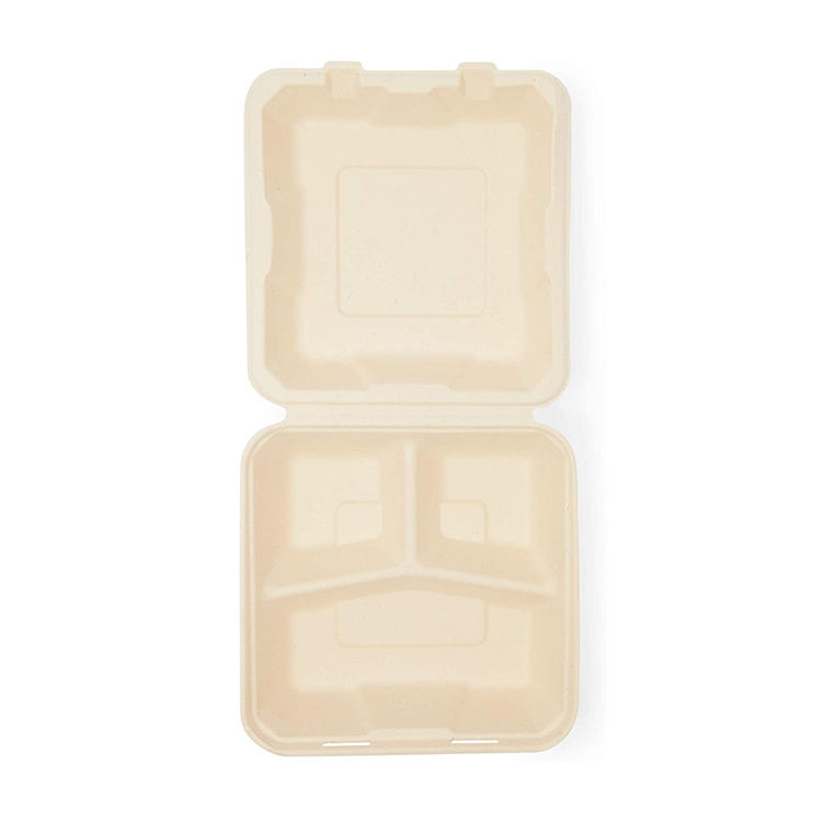 Eco Friendly 10*8 inch 3-com Sugarcane Bagasse Box