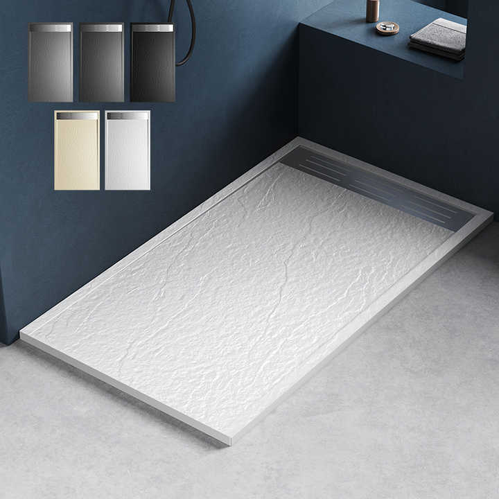 Plato de Ducha Rectangular Antideslizante de Instalación Fácil y Buen Precio de Fábrica China, Base Extra Plana Extraíble con Desagüe