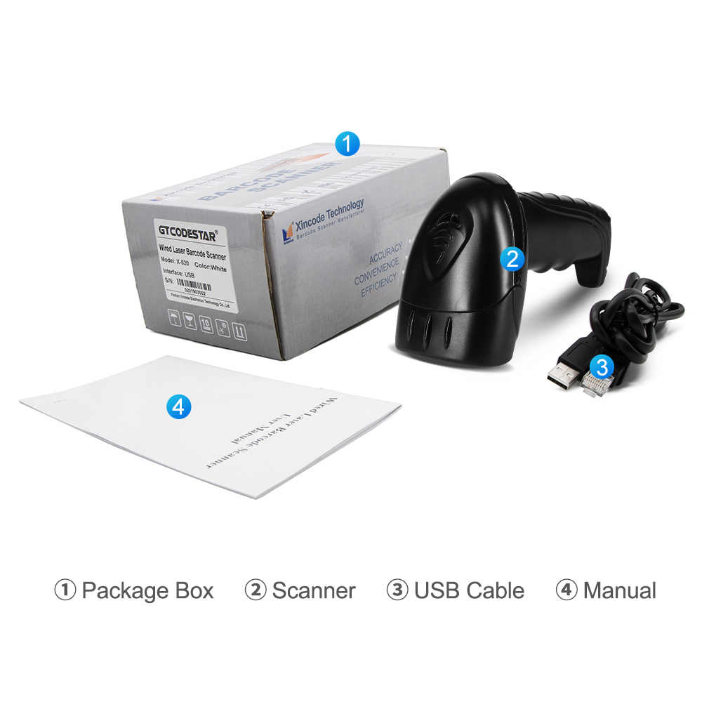 Fábrica china de mano con cable escáner de código de barras de 1D escáner de código de barras láser libro Manual, lector de código de barras de X-580