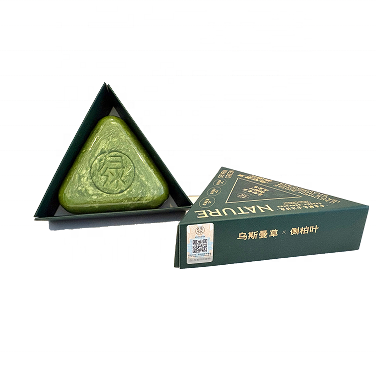 Fórmula Herbal China para Controlar la Grasa, Champú en Barra de Hojas de Platycladus Orientalis, Jabón en Barra para Cabello Verde Triangular
