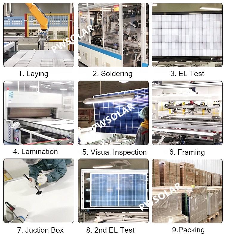 Panel Solar Policristalino PERC de Media Celda 240W 260W 280W HJT BIPV HBC 12V 24V con Garantía de 30 Años