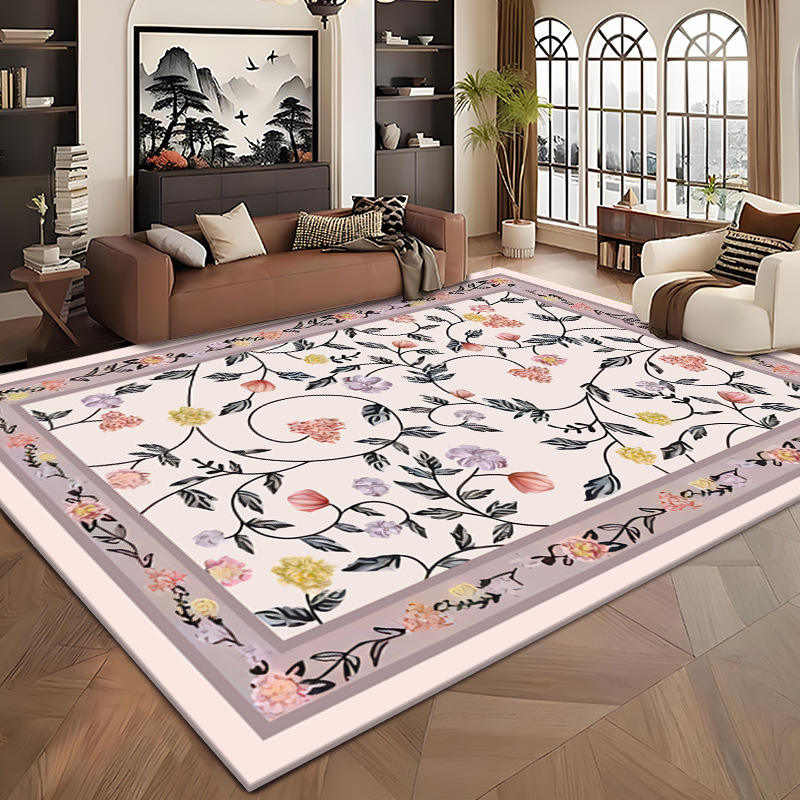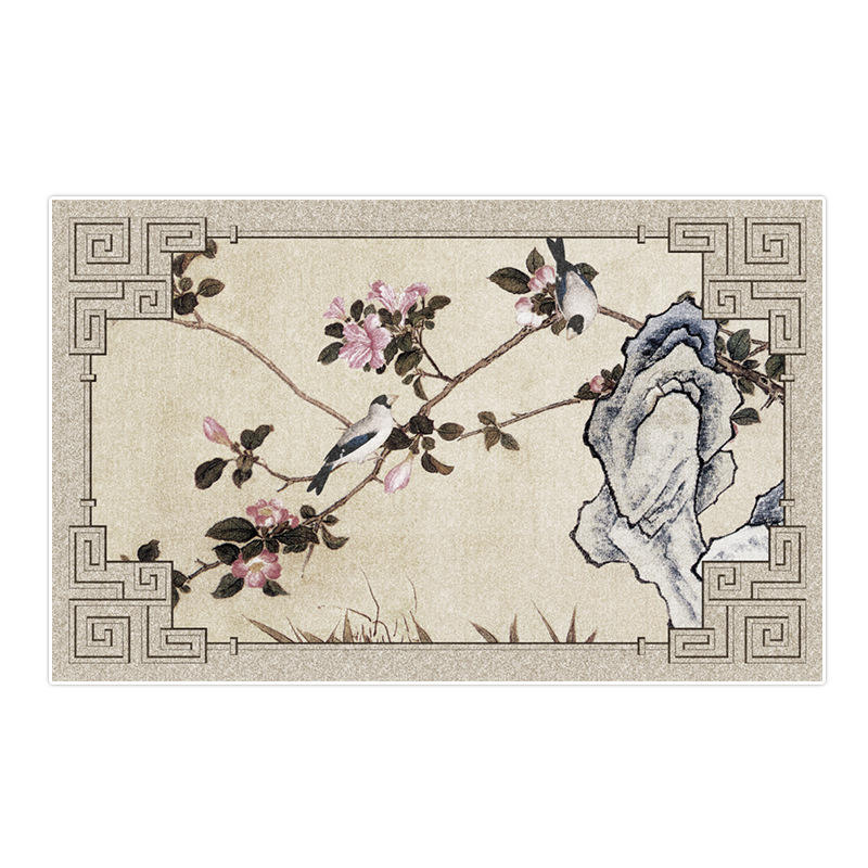 Alfombra de estilo chino, rectangular, con diseño de plantas y flores, resistente a las manchas, para sala de estar, dormitorio, estudio, hogar.