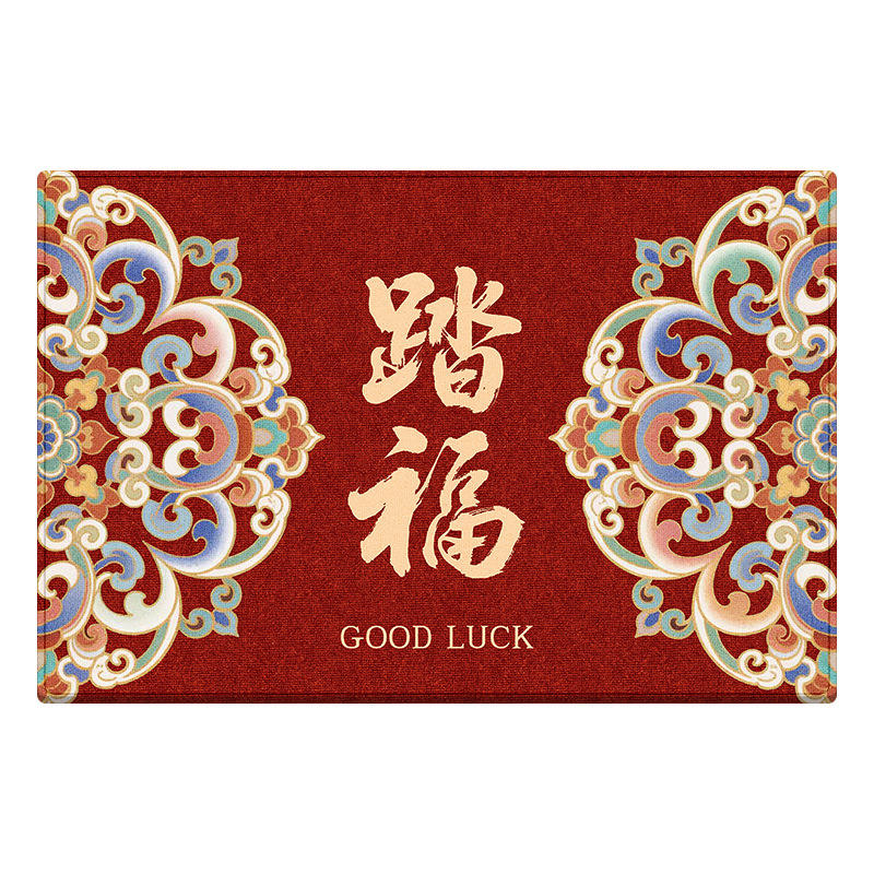 Alfombra de Entrada Estilo Chino, Rectangular Roja, de Fibra de Poliéster con Patrón de Medallón, Antideslizante, para Uso Doméstico, Diseño de Buena Suerte
