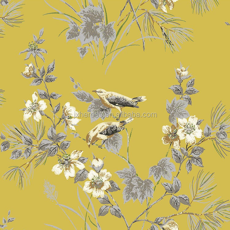 Papel Tapiz para Dormitorio de Estilo Chino con Diseño Exquisito de Flores y Pájaros, No Tejido
