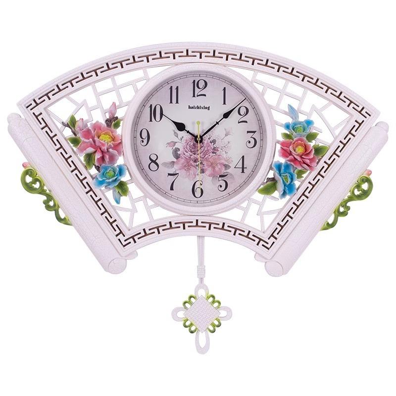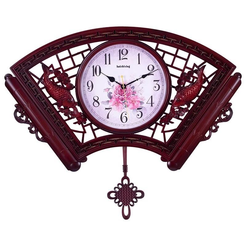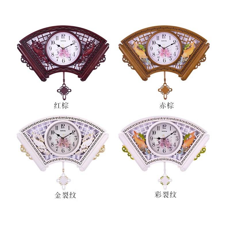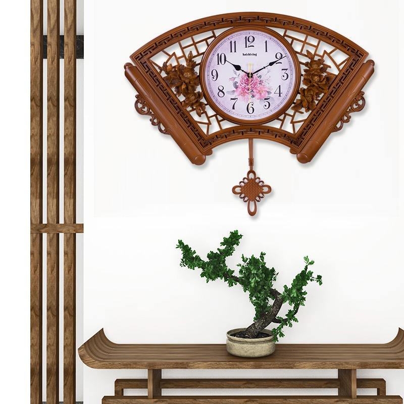 Chinese Style Fan Shape Wall Clock Battery Powered Living Room Decor Art Music Clock Single Face Irregular Design