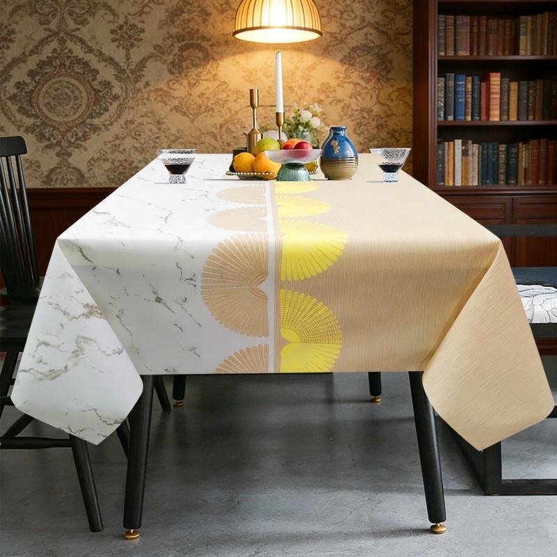 Mantel con Patrón de Hojas de Ginkgo Estilo Chino y Diseño de Mármol