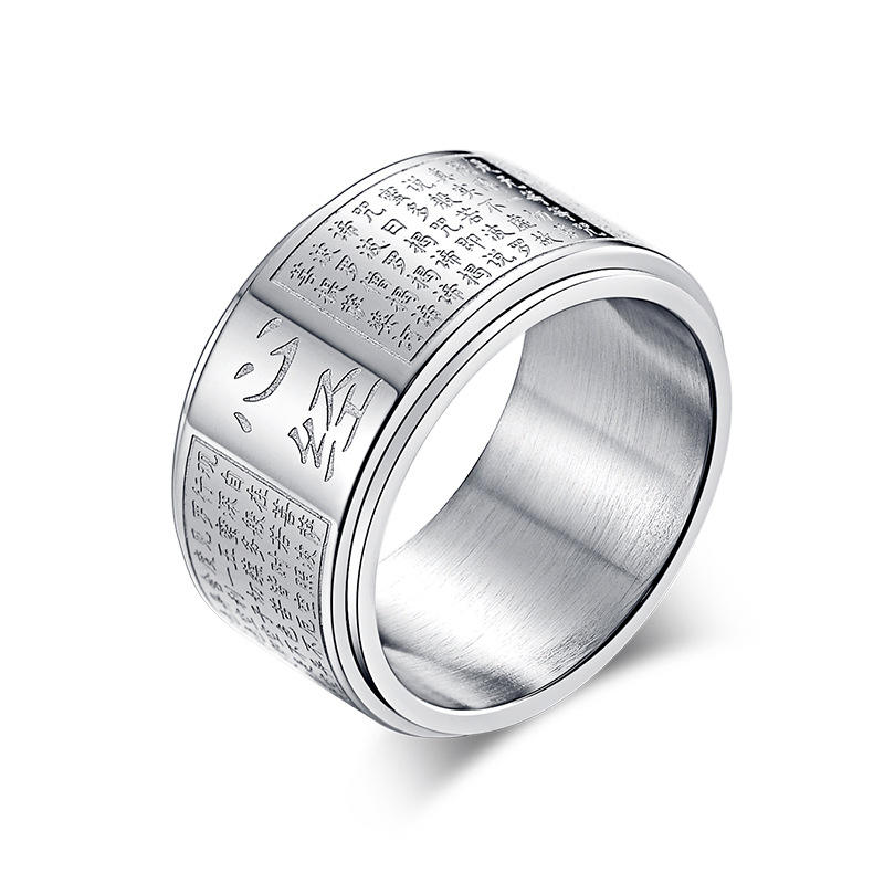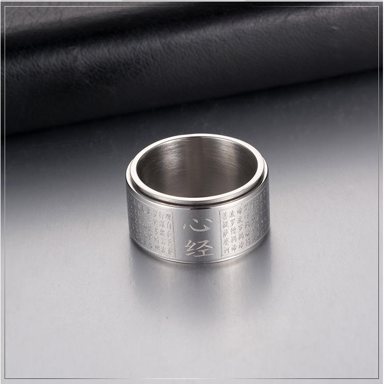 Anillo giratorio con diseño de Sutra del Corazón al estilo chino para hombre, de acero dorado, joyería budista, joyería para ceremonias religiosas