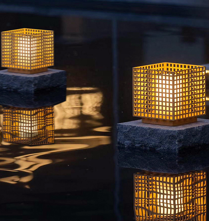Luces de camino solares de paisaje de estilo chino, lámparas de pie cuadradas para patio exterior LED IP65, faros de columna solar de alimentación de CA