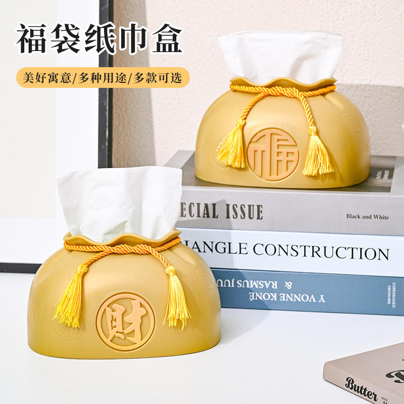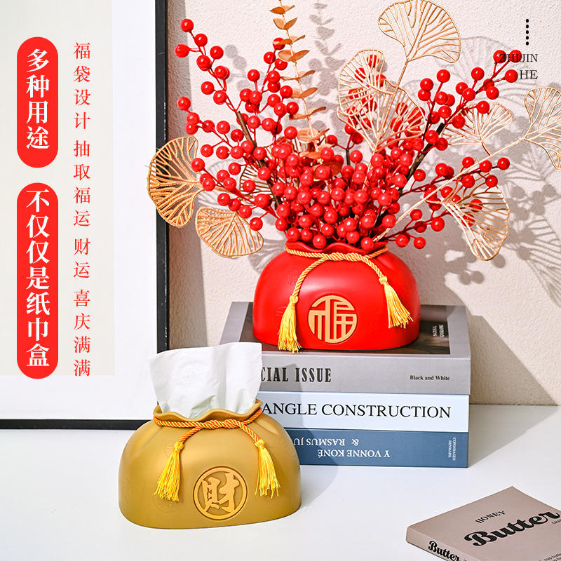Caja de pañuelos estilo chino, bolsa de la suerte, color rojo dorado, organizador multiusos, decoración para sala de estar, caja de regalo