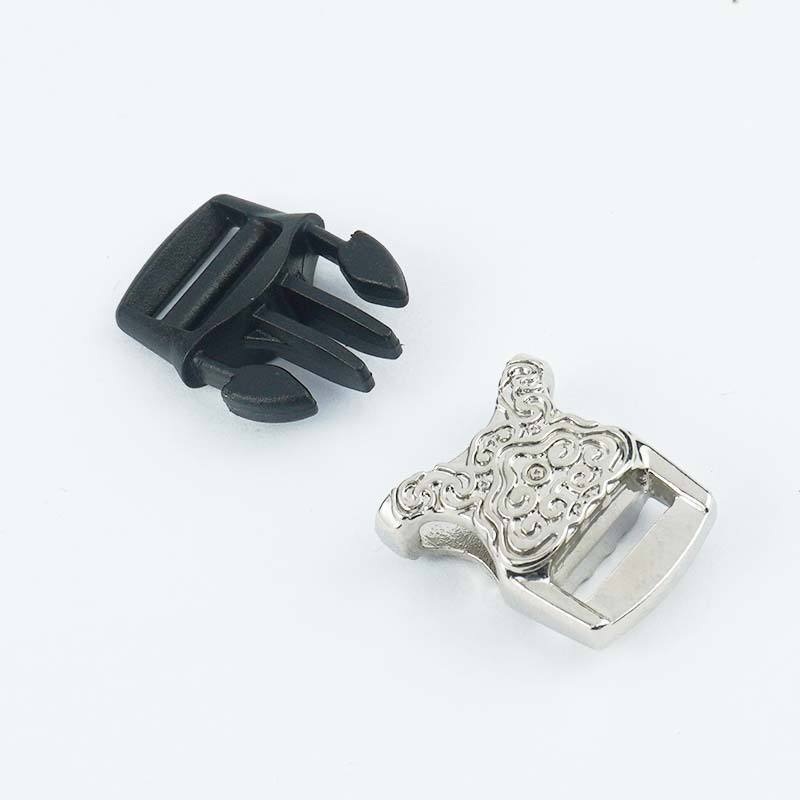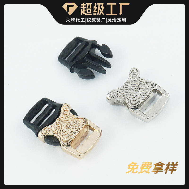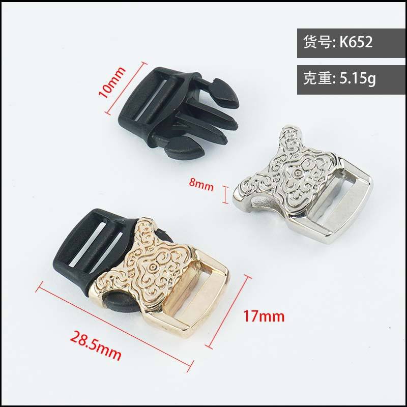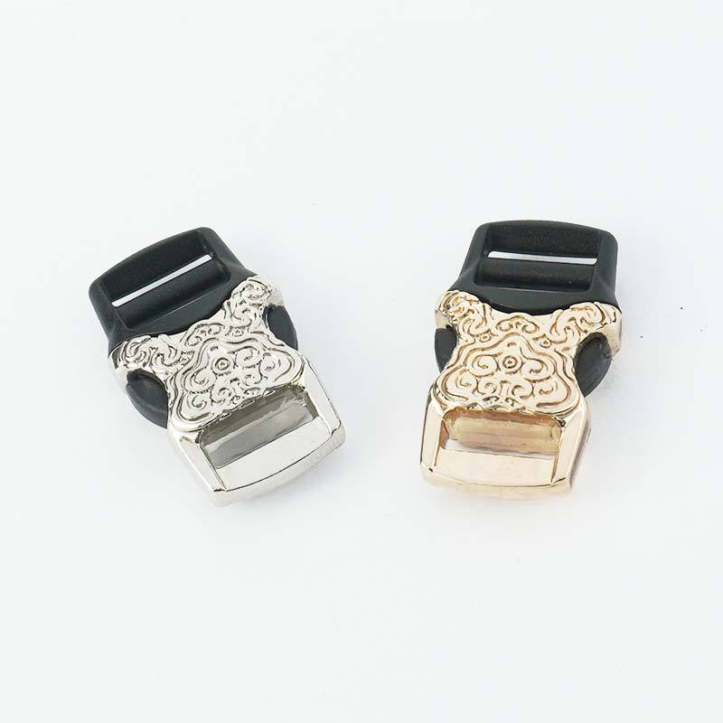Hebilla metálica estilo chino de 10 mm de diámetro interior, marco de aleación de zinc en plata y oro claro para cinturones, bolsos y mochilas.