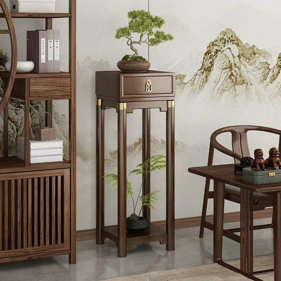 Mesa auxiliar de estilo chino con cajón y estante de almacenamiento para sala de estar o soporte para plantas en el balcón