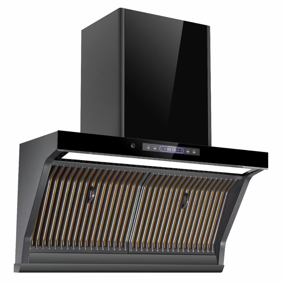Extractor de humo de cocina con chimenea inteligente de estilo chino, ventana de apertura automática, campana extractora de vidrio templado súper silenciosa