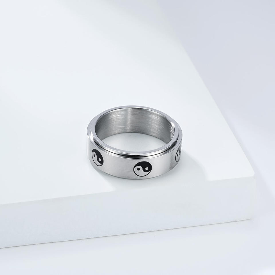 Anillo giratorio Yin Yang de estilo chino para hombre, anillo de dedo índice de acero de titanio, color dorado, negro y plateado, joyería de regalo