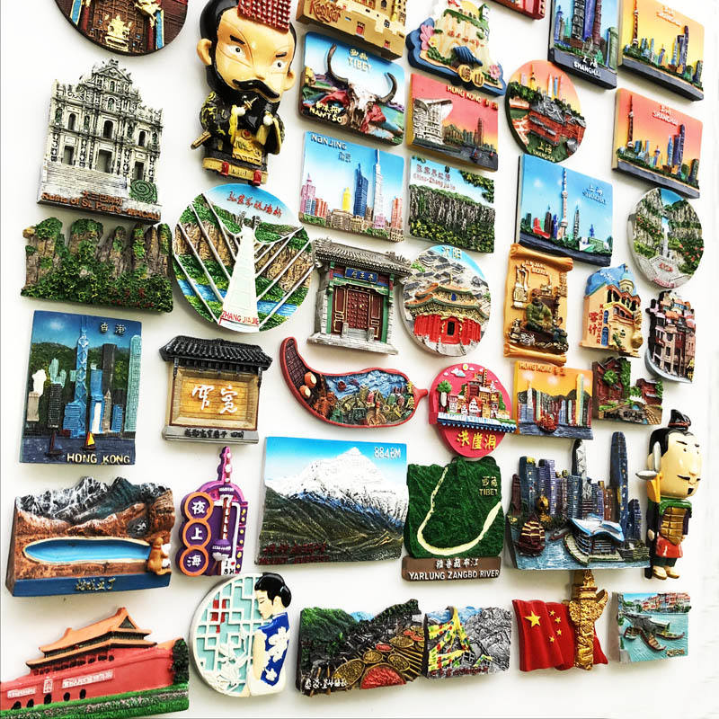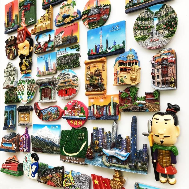 Imanes de nevera de ciudades turísticas chinas, recuerdos de lugar escénico 3D personalizados creativos, decoración magnética para el hogar