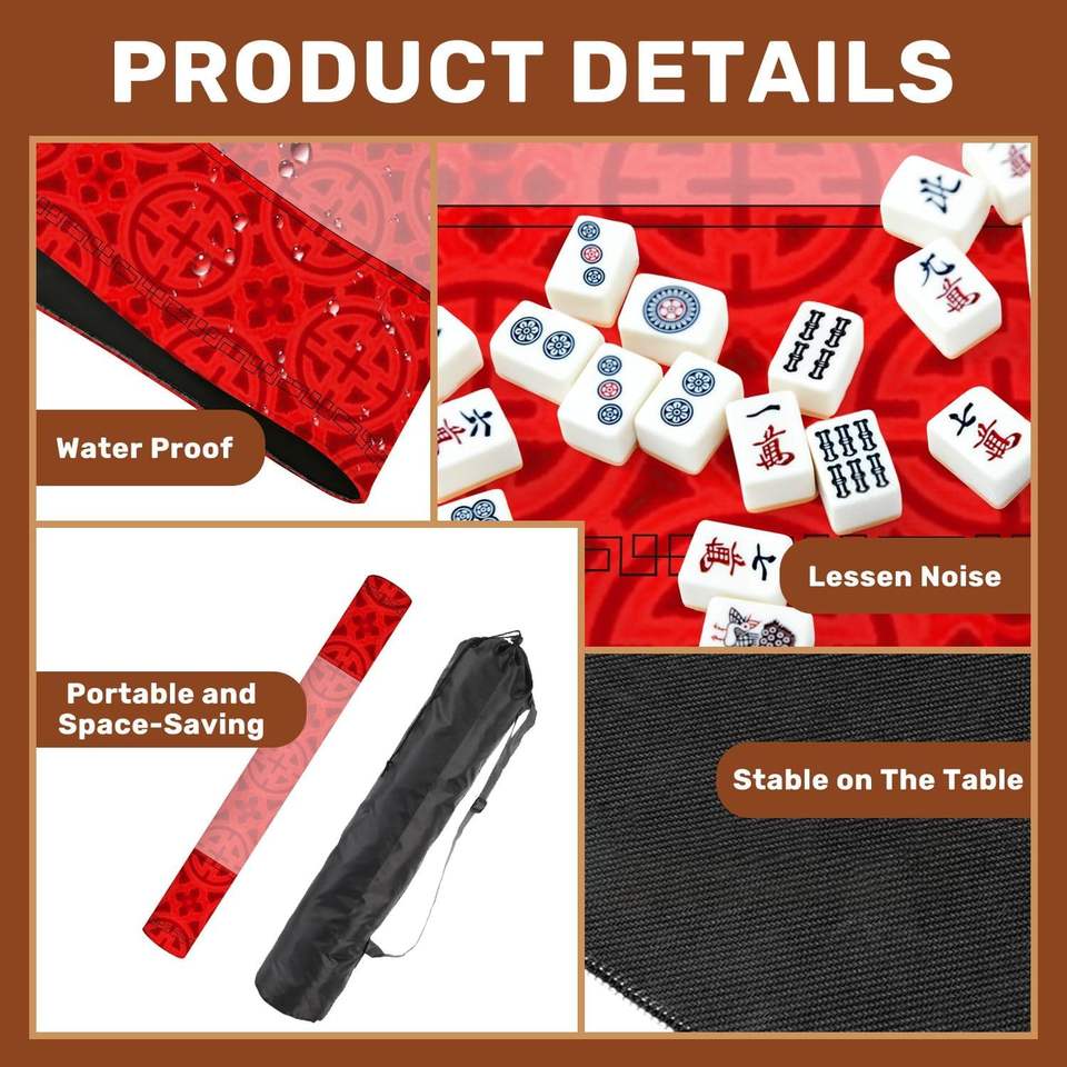 Tapete de Mahjong Tradicional Chino para la Suerte y la Riqueza, 31.5x31.5 Pulgadas, Antideslizante, Silencioso, Plegable, para Póker, Dominó, Novedades, Juegos de Fiesta