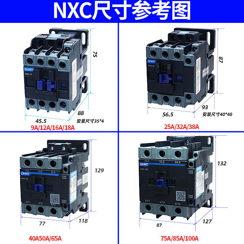 Contactor de CA Chint 220V Monofásico NXC-09 40 12 18 25 32 50 65 380V Trifásico 36V Contactores