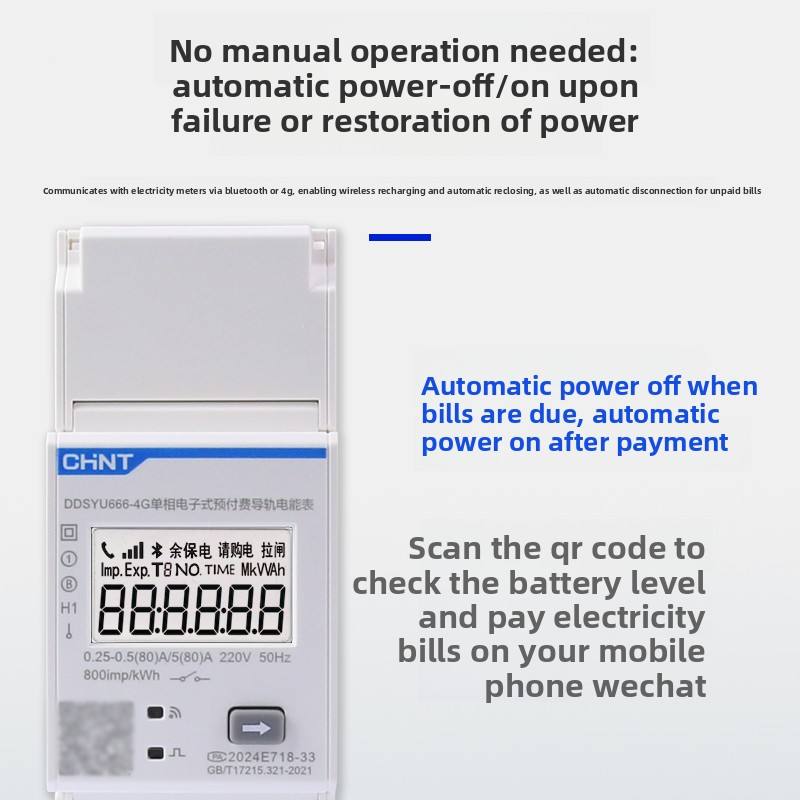 Medidor Eléctrico Prepago 4G Chint, Riel DDSYU666, Recarga de Teléfono Móvil Inalámbrica con Código QR