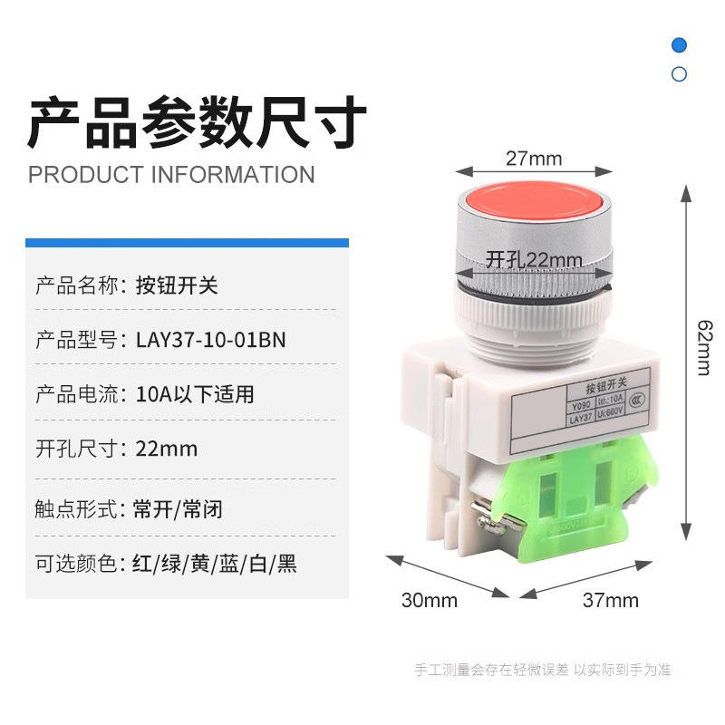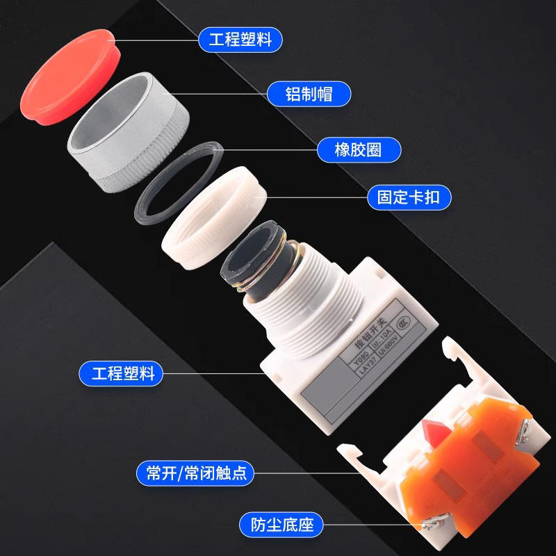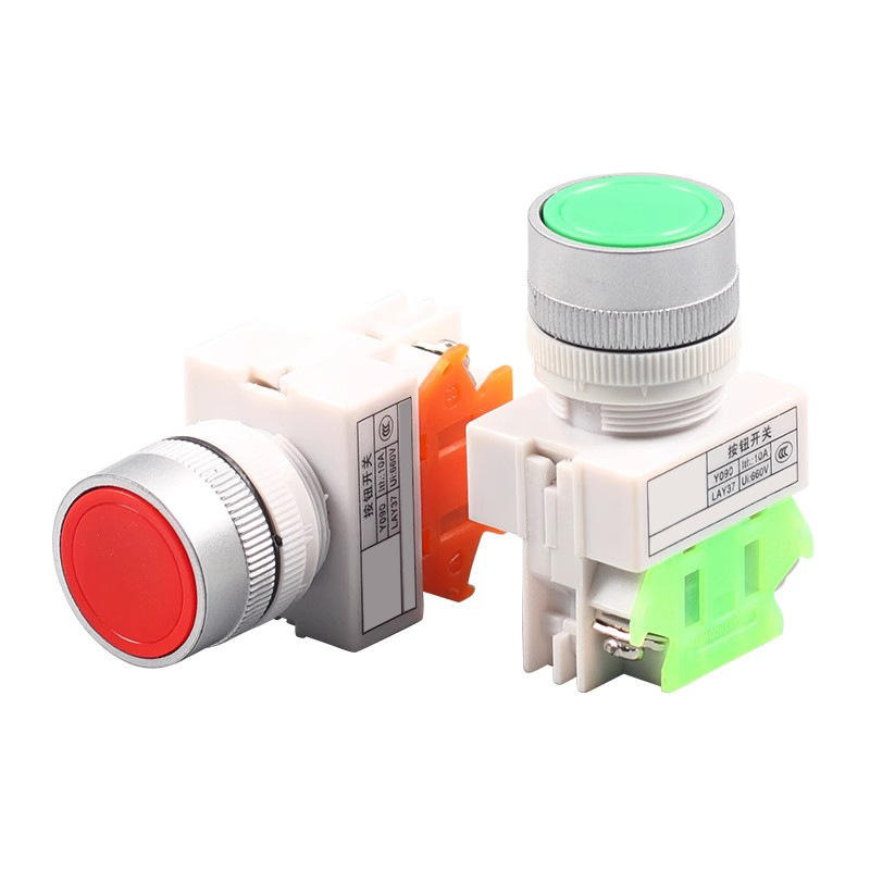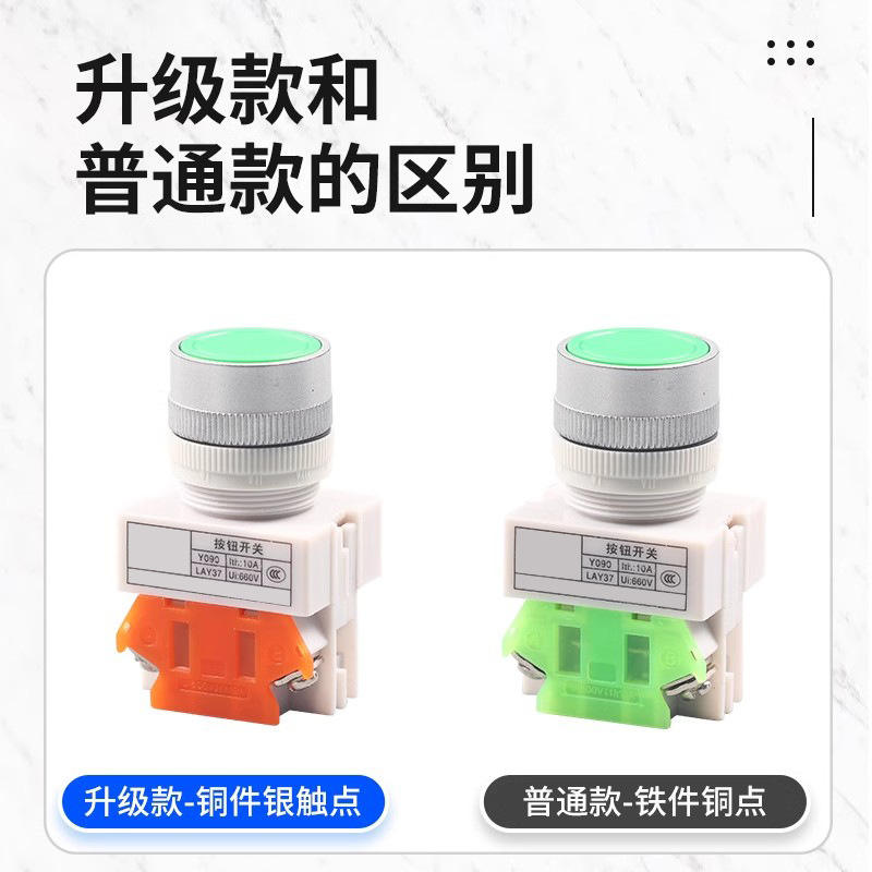 Interruptor de Botón Pulsador Chkl LAY37-01/10BN con Tapa de Aluminio y Contacto Plateado de un Solo Lado