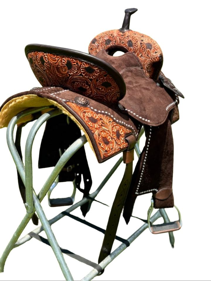 Choco Brown Sunflower Tooled Horse Saddle Portable Western Riding Horse Saddle Western Dressage Saddles para caballos Cuero