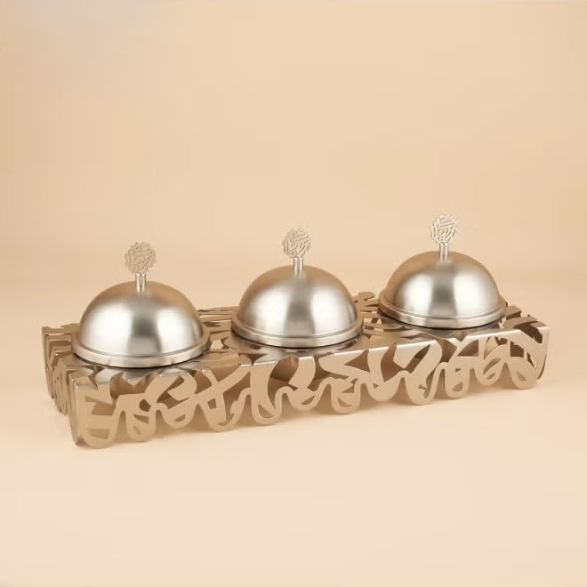 Juego de Tazones Desechables de Acero Inoxidable Libres de BPA para Chocolate, Tres Mini Tazones con Elegante Diseño Láser, para Servir Frutos Secos en Fiestas