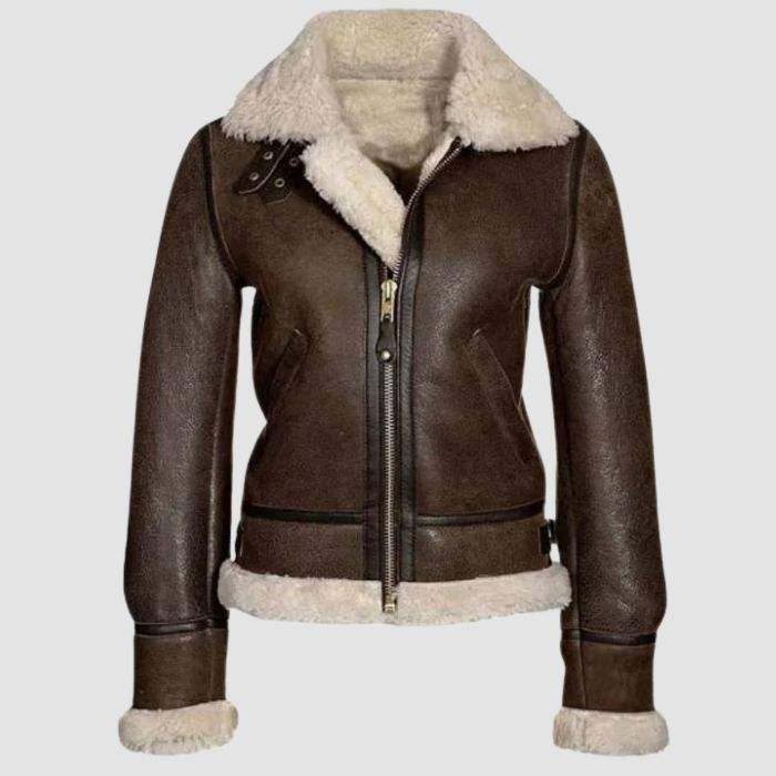 Chaqueta de aviador de piel marrón chocolate para mujer