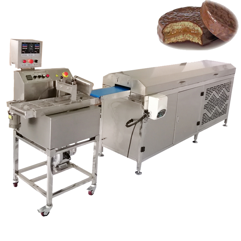 Máquina de recubrimiento de chocolate con precio de fábrica para envolver galletas, pasteles, etc./máquina de envolver donas de chocolate
