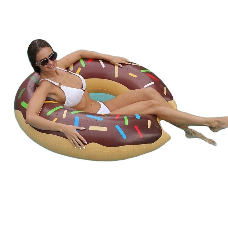 Flotador de Piscina con Forma de Donut de Chocolate, Anillo Inflable Grueso para Adultos, Diversión Acuática de Verano