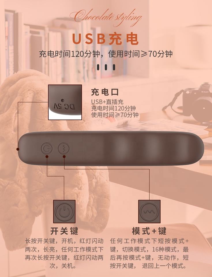 Vibrador de Chocolate 16 modos USB recargable diario impermeable estimulador de clítoris para mujeres pareja juegos previos juguete sexual para adultos 50dB