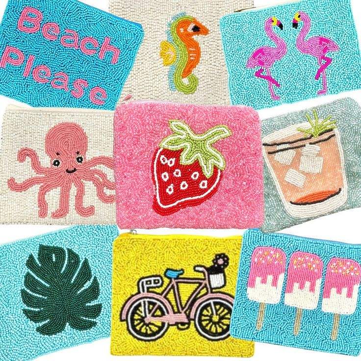 Monedero Cuadrado con Diseño de Piña Multicolor, Bordado a Mano con Cuentas, Elegante, Moderno, Premium, Hermoso, Último Modelo
