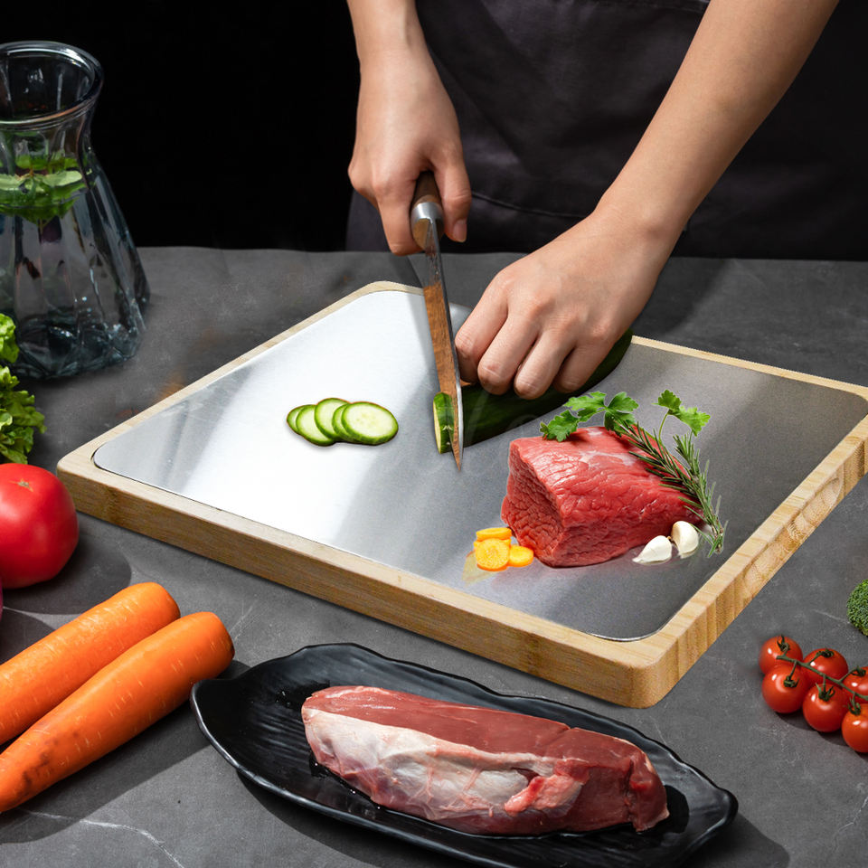 Nombre del producto:Tabla de cortar de bambú del SUS del rectángulo
