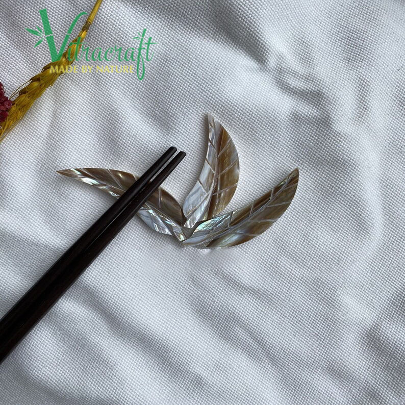 Chopstick Stand Made From High Quality Pearl Shell. Unique Leaf-shaped Chopstick Holder, Spoon Rest. Size 6.5x2cm Handmade Vietnam Safe to Use