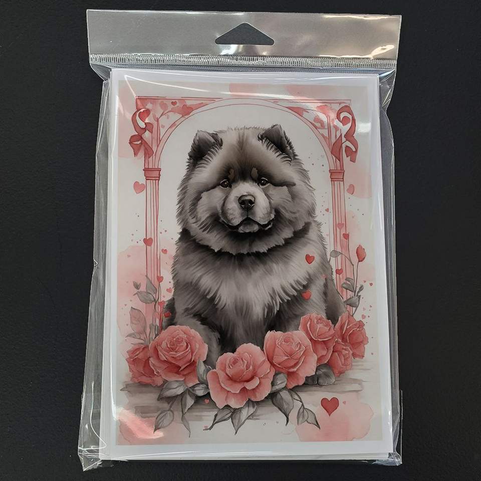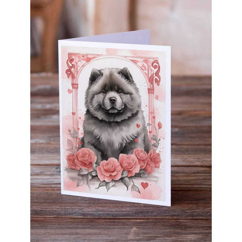 Chow Valentine Roses A7 Tamaño 5x7 Tarjetas de notas en blanco Paquete de 8 tarjetas de felicitación caprichosas con sobres