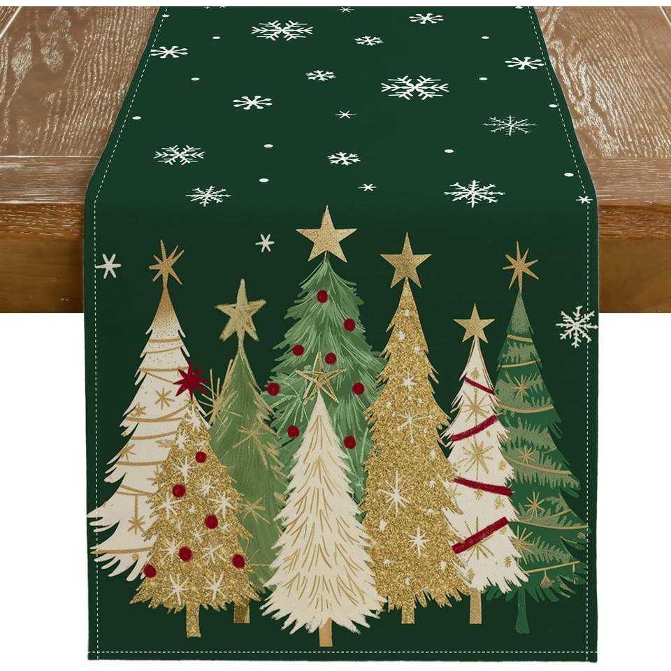 Camino de Mesa Navideño de 13x72 Pulgadas, Estilo Rústico, con Árboles de Navidad y Copos de Nieve, Decoración Festiva para Mesa de Cocina o Comedor