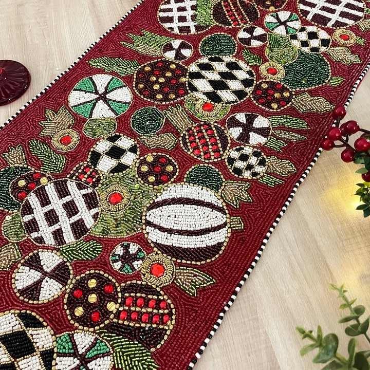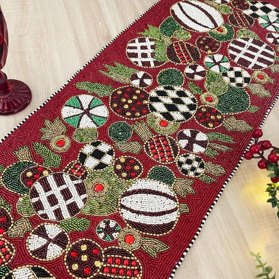 Camino de mesa con cuentas de Navidad, decoración de mesa bordada a mano para boda, comedor, fiesta, uso doméstico