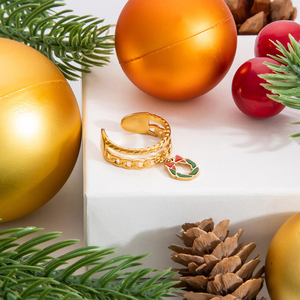 Anillos Colgantes de Dibujos Animados Navideños, Chapados en Oro de 18K, Juego de Joyería para Mujer, Regalo