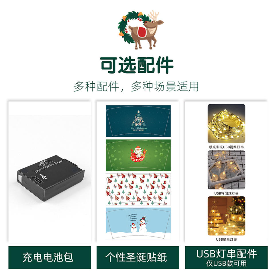 Luces LED en forma de taza de Navidad, con pilas, decorativas para árbol, iluminación navideña, diseño redondo de 36V