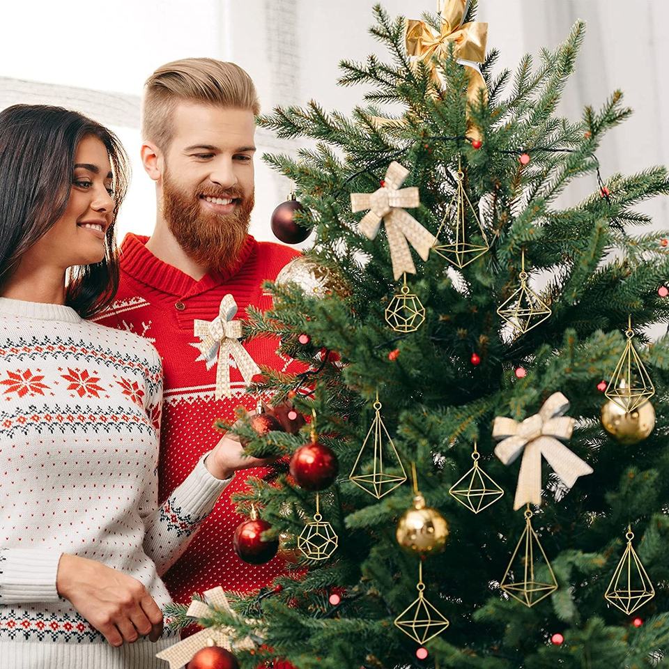 Christmas Diamond Shape Geometric Trees Decor Brass Wire Metal Pendant Gold Centerpieces wall Hanging Boho Ornaments for Air Plant Holder Decorations (8 Pieces)