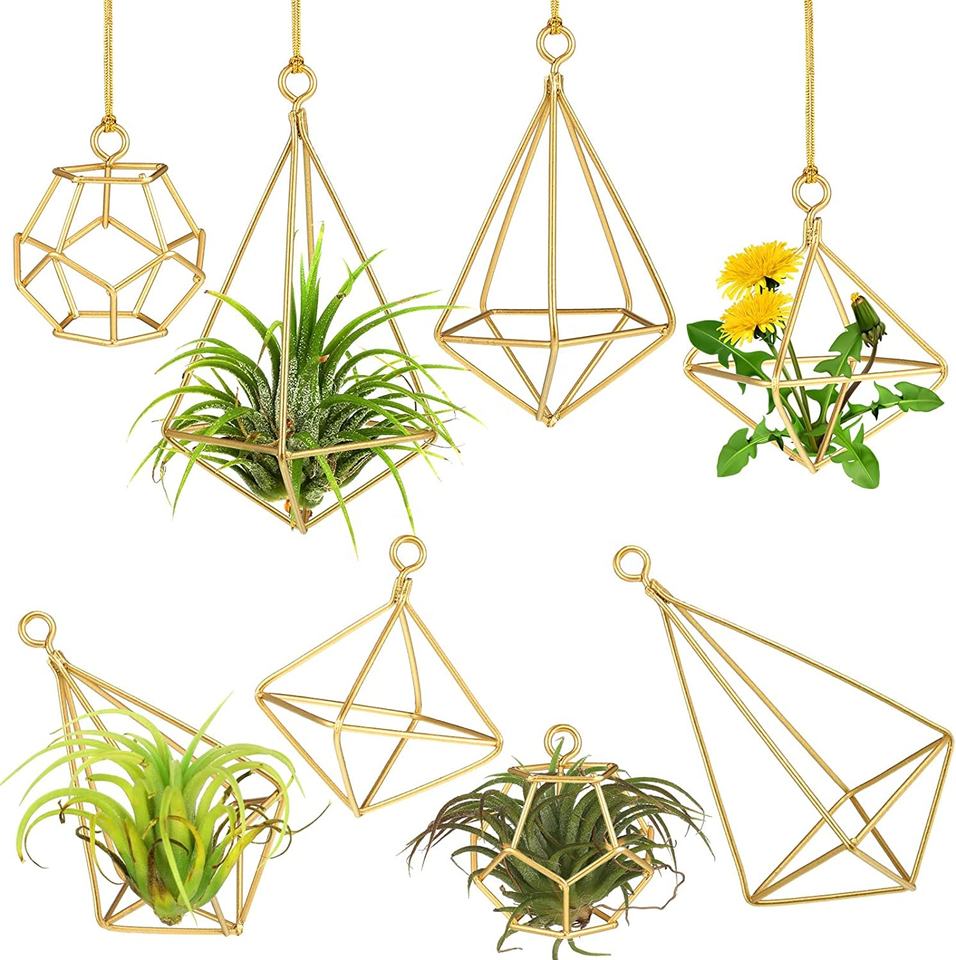 Colgante de Metal con forma de árbol geométrico para decoración de Navidad, colgante de alambre de latón dorado para pared, soporte bohemio para plantas de aire, 8 Uds.