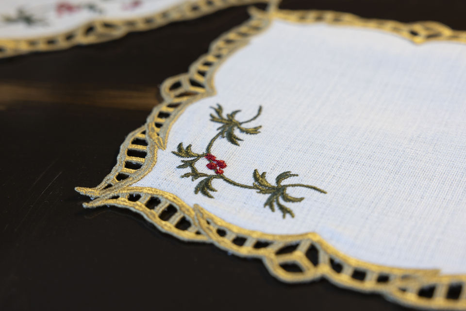 Juego de textiles de mesa bordados de Navidad 22 piezas Servilleta de cóctel de corredor Servilleta de cena Servilleta 100% Poliéster Lino Resistente a las manchas