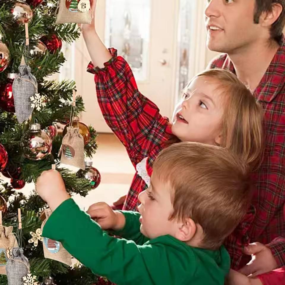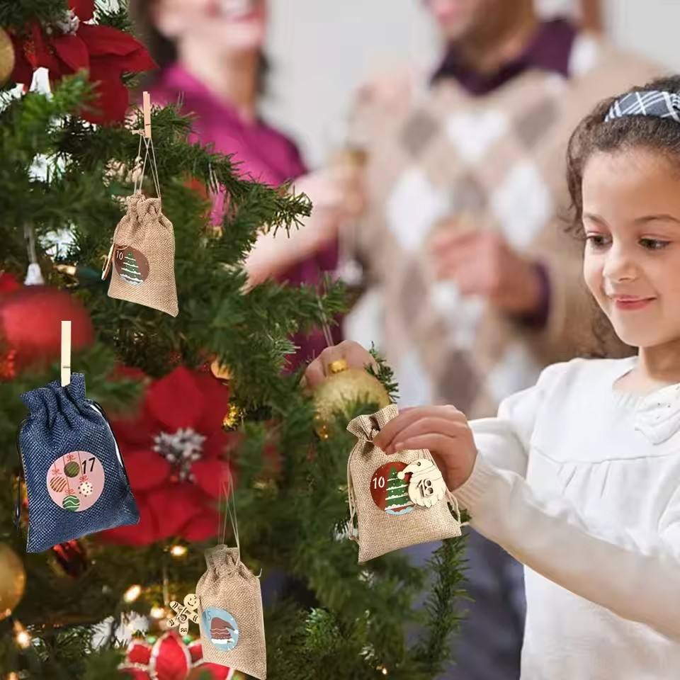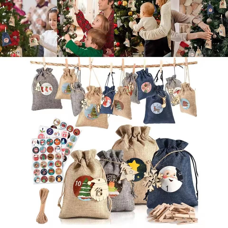 Navidad nueva bolsa con cordón a cuadros CALENDARIO DE Adviento cuenta regresiva 1-24 caramelo cordón bolsa colgante reciclable estampado impresión