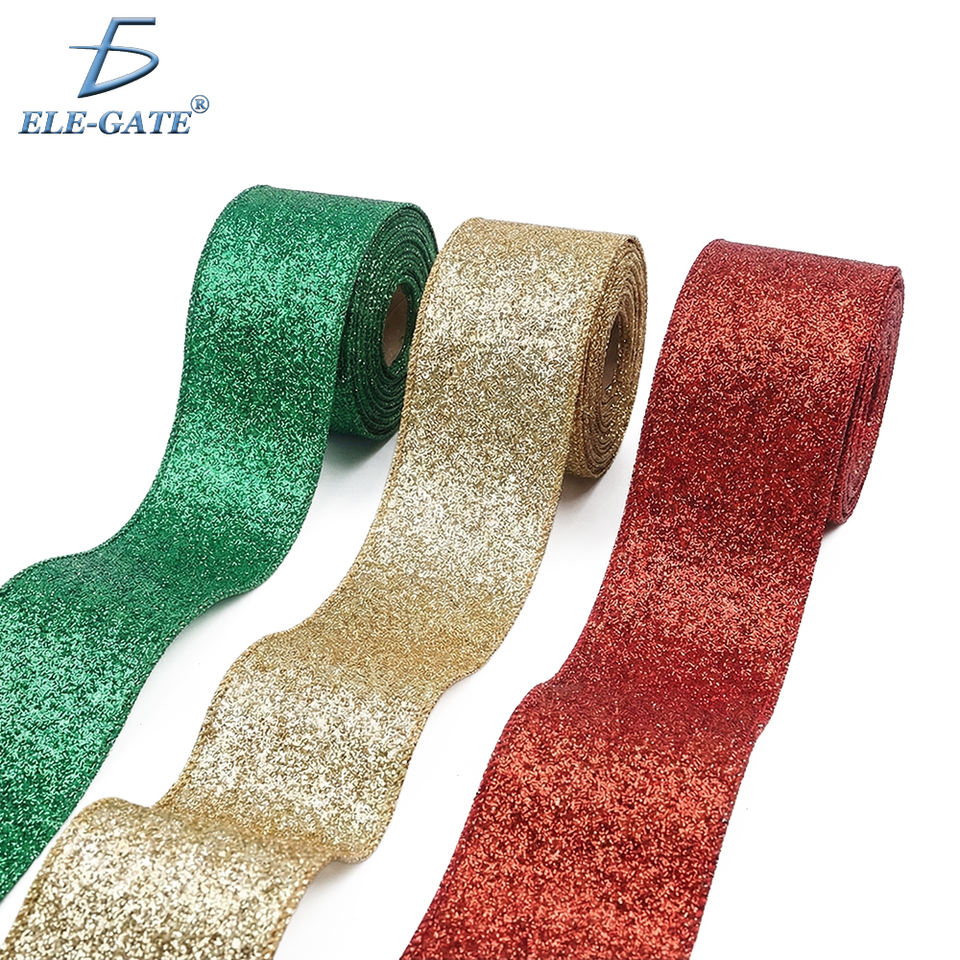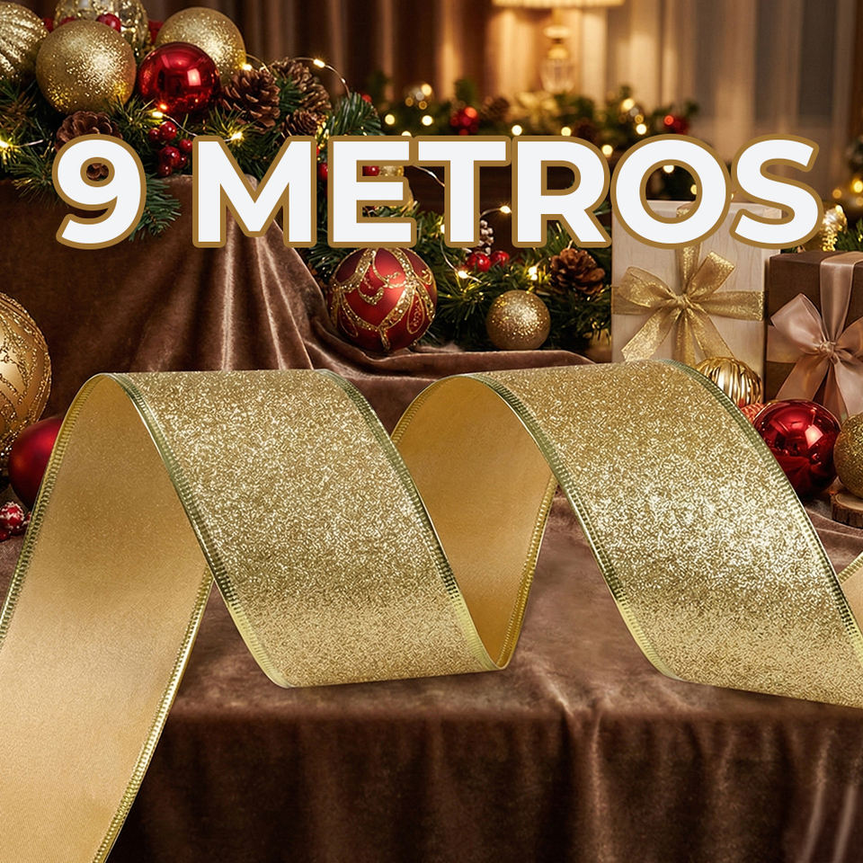 Cintas Navideñas en Rojo, Verde y Dorado con Brillo, Tela de Algodón Estampada para Manualidades