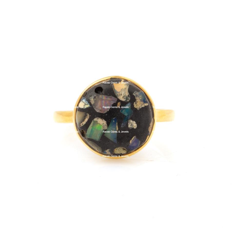 Product name:Natural Black Ethiopian Opal Copper Silver Gold Plated Statement Ring