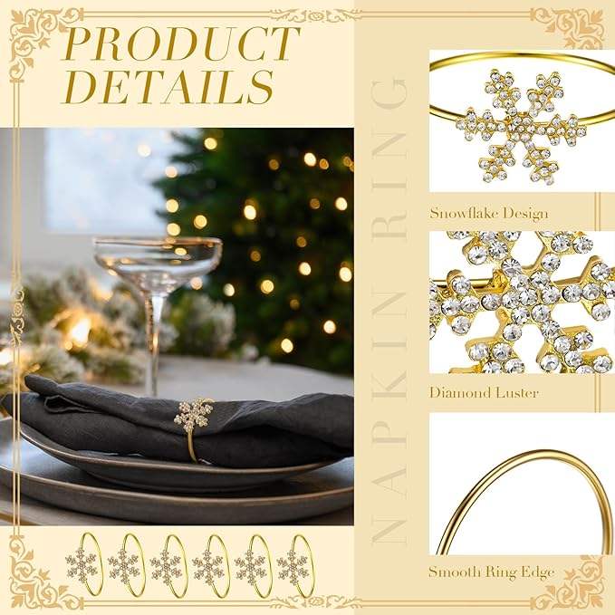 Navidad copo de nieve cristal Rhinestone Metal servilleteros FIESTA DE Acción de Gracias elegante decoración de mesa para bodas ocasiones especiales