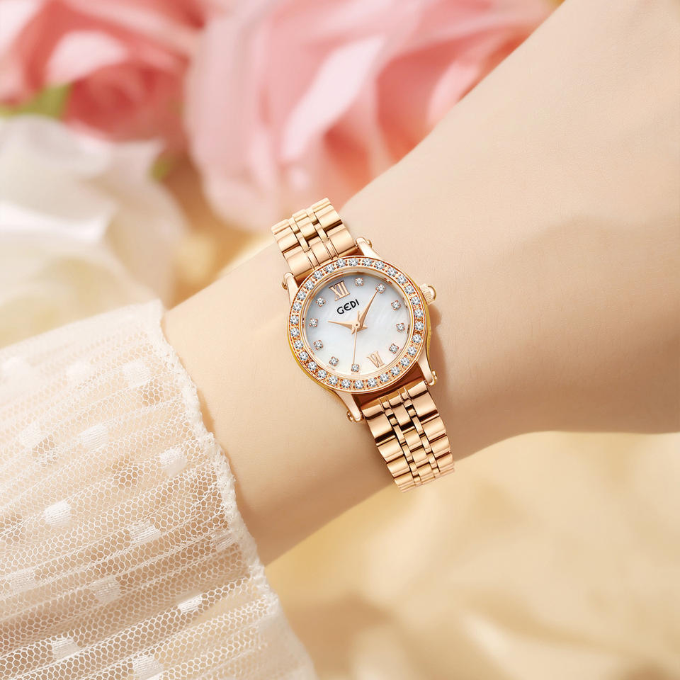 Reloj de Cuarzo con Correa de Acero y Esfera de Nácar con Diseño de Estrellas, Estilo Ligero y Lujoso, Especial de Navidad para Mujer