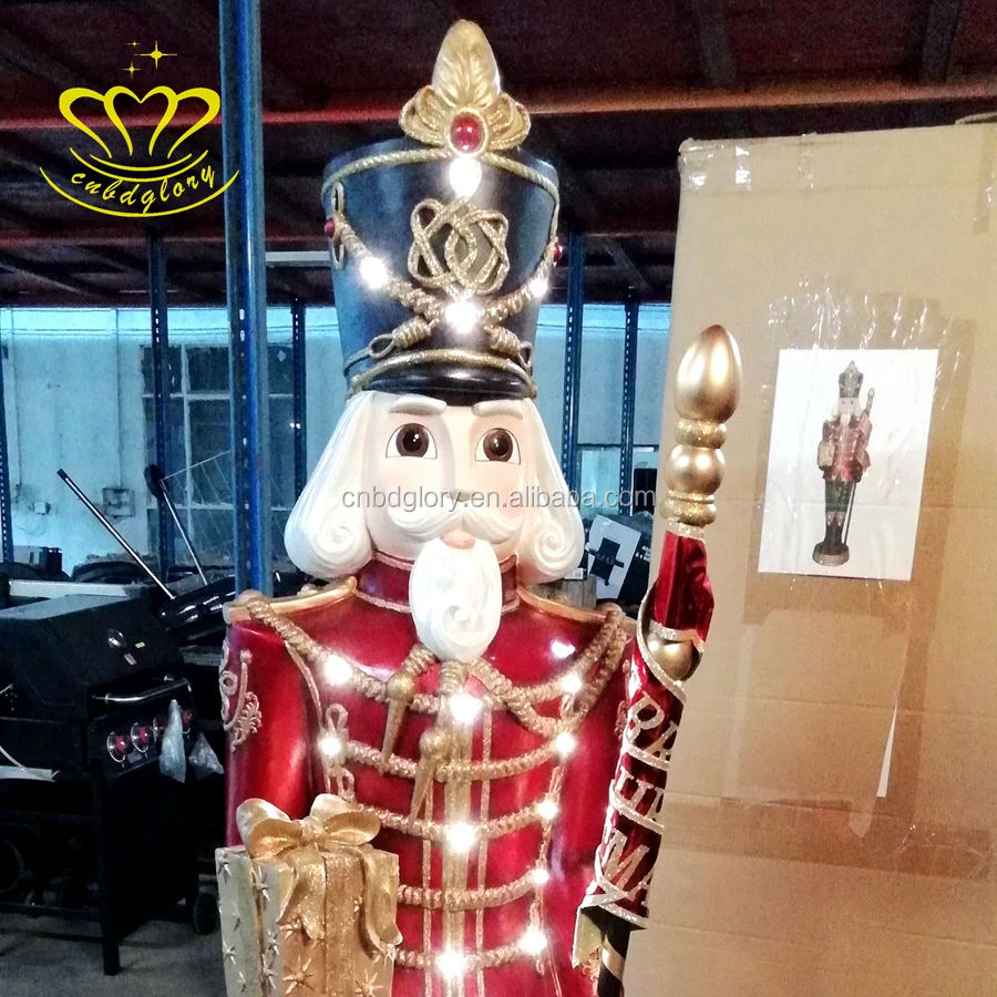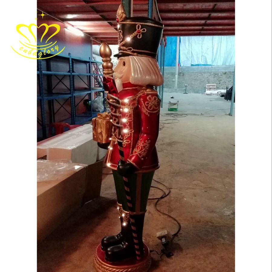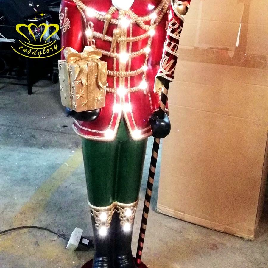 Navidad calle LED luz arte escultura resina Cascanueces soldados paisaje decoración diseño elegante estatua de fibra de vidrio