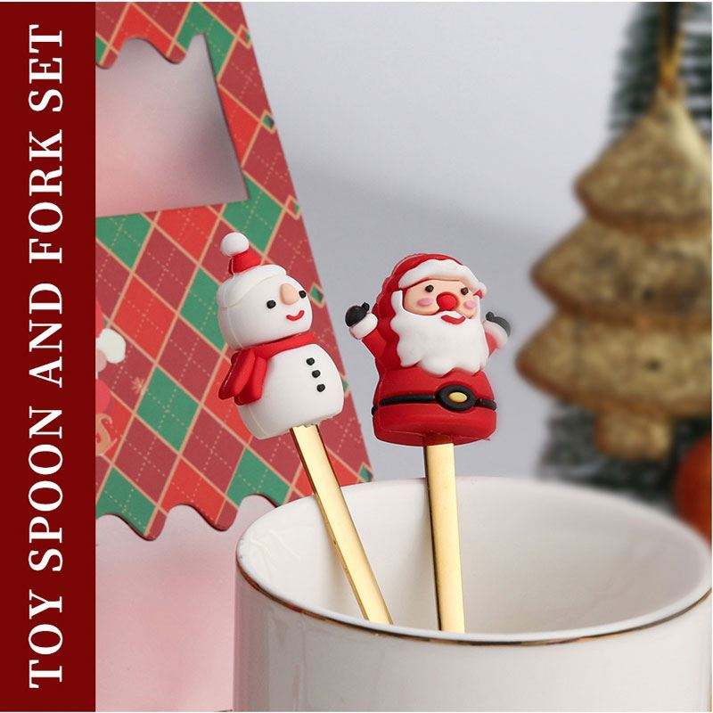 Juego de Cubiertos Navideños, Cuchara de Café con Dibujos Animados, Cuchara de Postre de Papá Noel, Tenedor de Frutas, Caja de Regalo