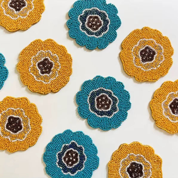Juego de vajilla de Navidad Posavasos de té de madera redondos con diseños de cuentas para bebidas de café y almohadilla decorativa-Exportaciones descaradas