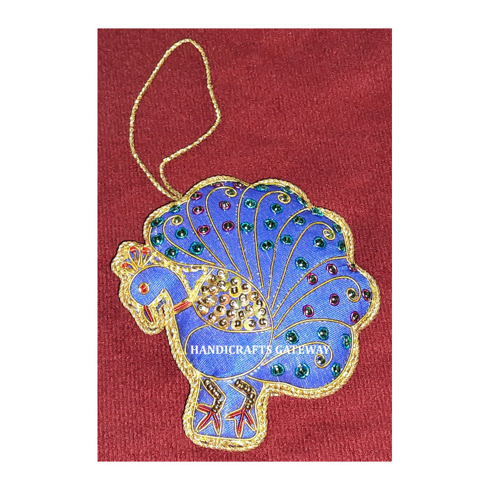Adorno Navideño y Decoración para el Hogar con Bordado de Hilo Dorado y Cuentas en Forma de Pavo Real