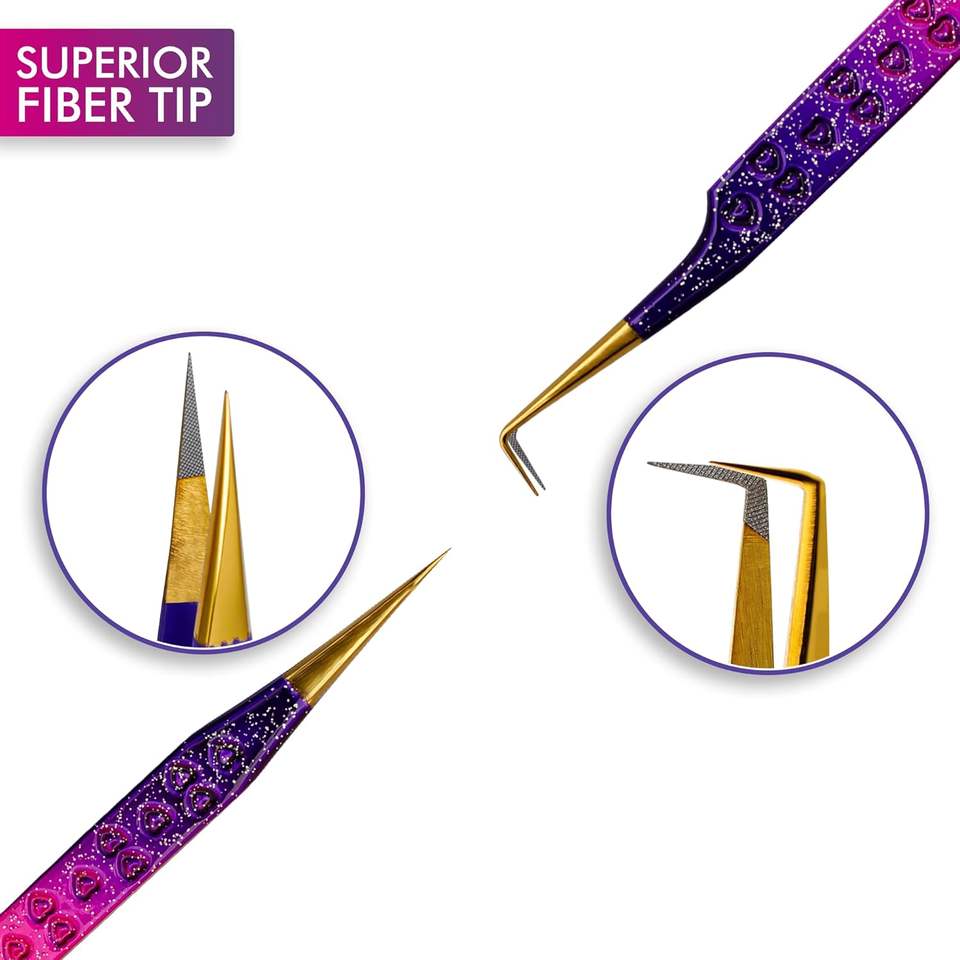 Pinzas navideñas para extensión de pestañas, ventilador de pestañas con forma de corazón, pinzas de aislamiento y volumen de Punta lisa de acero inoxidable